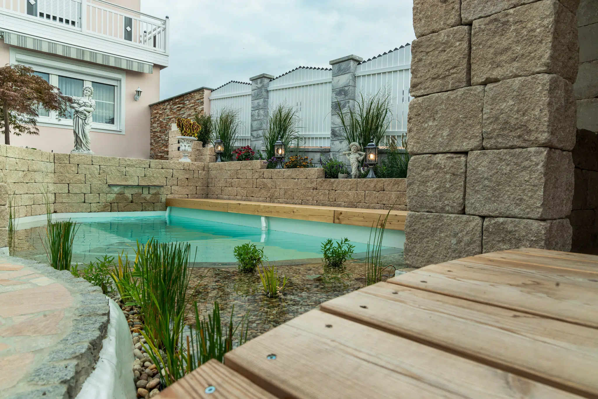 Naturpool in Wien – exklusive Alternative zum klassischen Pool. Natürliches Badeerlebnis ohne Chemie, perfekt kombiniert mit moderner Gartengestaltung.